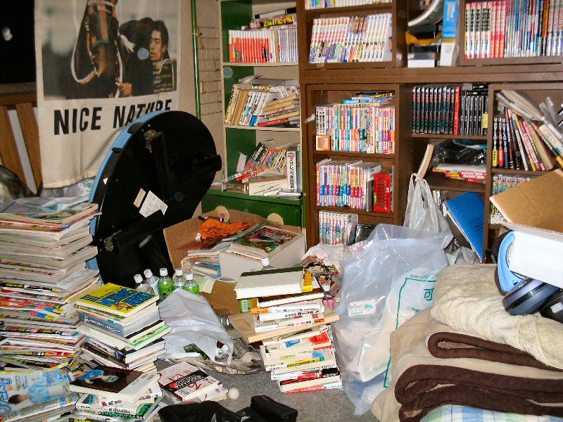 色々とありまして、休んでたんです。で、その流れで部屋の片付けをしようと思ったんです。あくまで、片付けをしようと思ったんですよ、いや、ホントに。で、気付いたら、↓こんな惨状になってた。