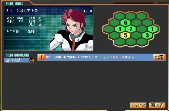 こんな感じでオタク的ハーレム状態作って楽しんでます。名前と顔のイメージがあってないのはご愛嬌。そこは脳内補完でなんとかします。最初は、誰かが撃墜される度に絶叫モンだったんですけど、今じゃ慣れてきてしまって、“またかよ……”ってな感じになってきてます。慣れって怖いね。つーか、2回に1回は沙羅死んでるし、そりゃ慣れるわ。