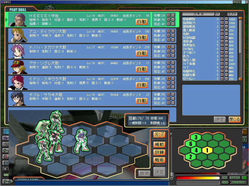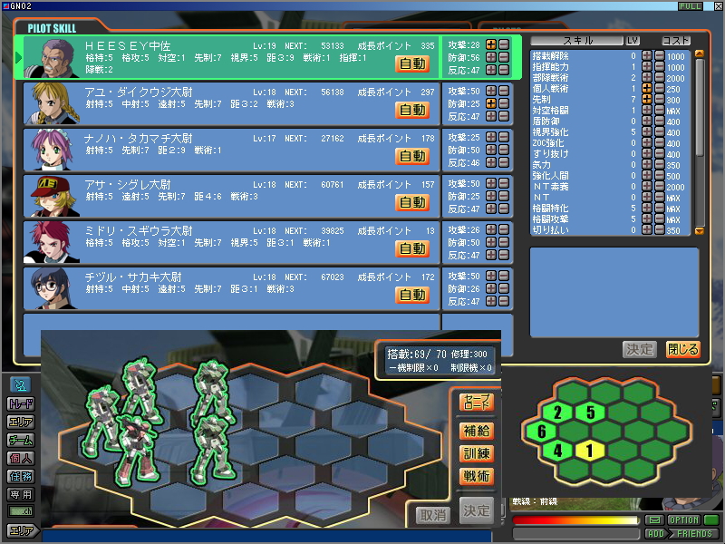 指揮は、部下を高壁にする為に絶対に必要なスキル。隊長を低壁にする、ジムカスタムロールアウトに合わせてMAX取得を目指す予定です。