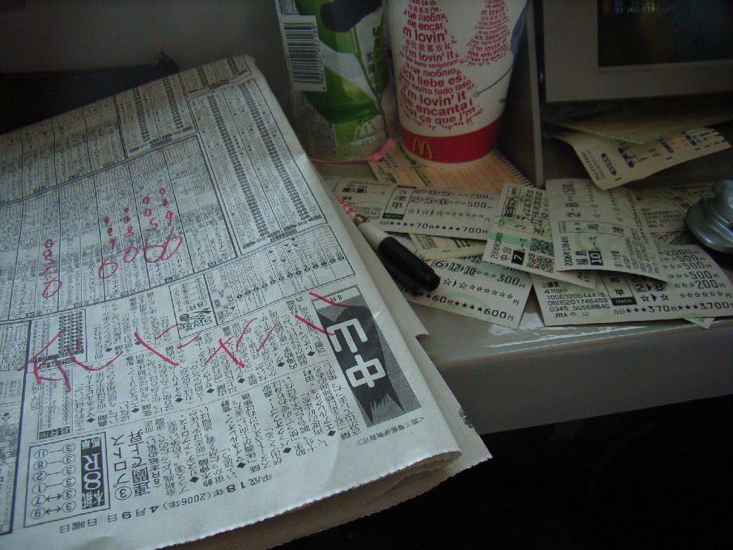 いやー、負けたね。凄い負けた。この時点で福島10Rくらいまで終了していて、取ったレースはZERO。俗に言うヤキトリっていう状態?みたいな?そんな感じ。でも、まだ福島メインは当てる気満々だったのかも。ご丁寧に資金振りまで新聞に書いてあるし。まだ財布にお金も残ってたし。