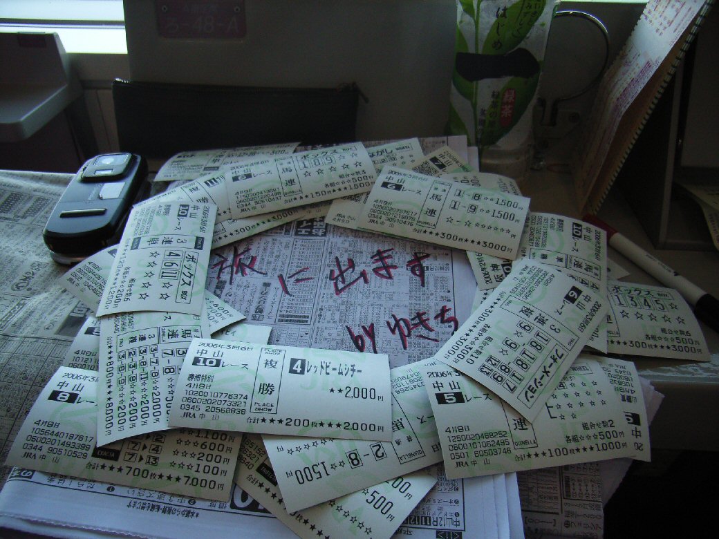 大体、オカシイんですよね。前日の負けを取り戻そうという発想がまずオカシイ。キチガイ以外に表現方法が思い付かないくらいオカシイ。けど、事が起こるまでは気付かないのが頭が悪い人の特権。という事で、帰りはチョビ髭ステッキという夢想を抱きつつ向かった、桜満開な中山競馬場。そこでオタ二人を待ち受けていた、オチが分かりすぎるくらい分かる運命とは!?