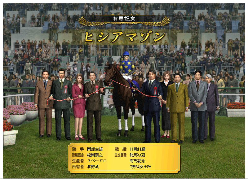 なんつーか、うん、勝っちゃった。後方からまくり気味に進んで、最後は先に抜け出したナリタブライアンを豪快に差し切ってゴール。ちょっと唖然としましたけど、これもまた競馬。っていうか、アマゾン強すぎ!
